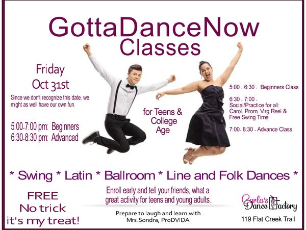 For all ages, for families, add a performance and dancing for all. Styles include Swing, Latin and Ballroom Dances.